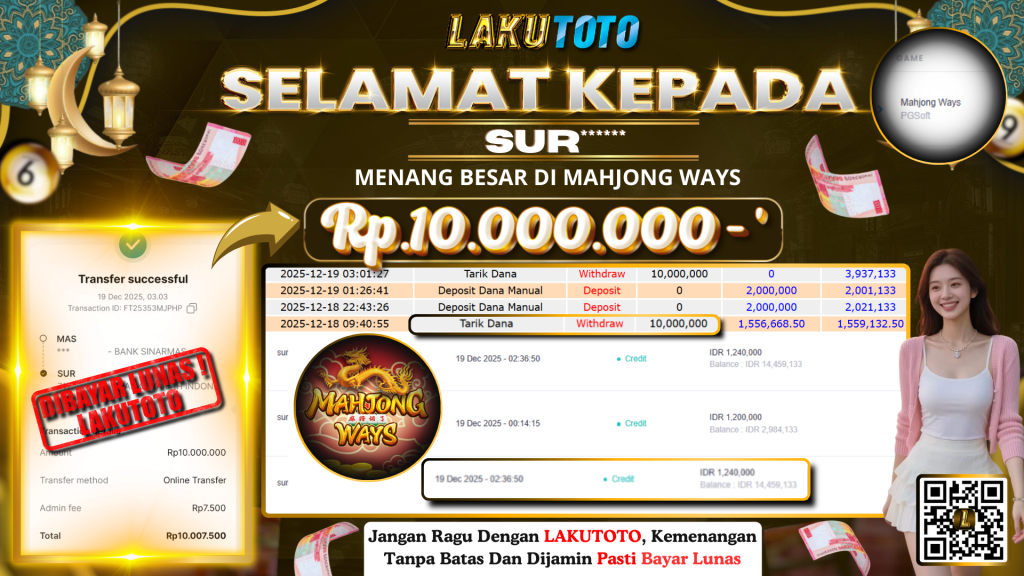 Kategori Bukti Bayar JP BUKTI BAYAR JP Penulis artikel Oleh Operator Lakutoto Tanggal artikel 19 Desember 2025 MAHJONG WAYS JUMAT, 19 DESEMBER 2025 RP10.000.000,- SELAMAT KEPADa PEMENANG, SALAM JP ← PREDIKSI HONGKONG LOTTO → BUKTI BAYAR JP