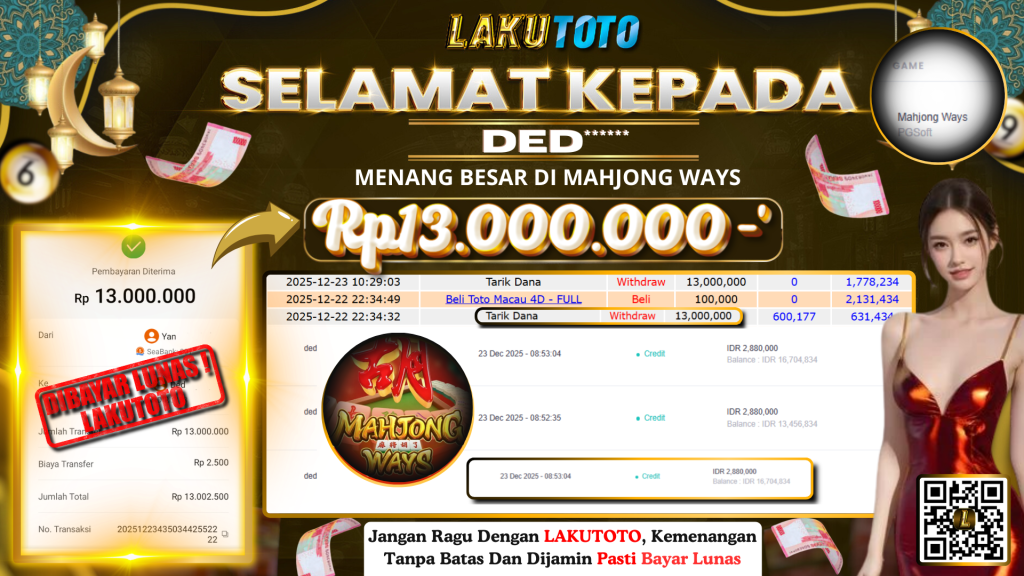 Kategori Bukti Bayar JP BUKTI BAYAR JP Penulis artikel Oleh Operator Lakutoto Tanggal artikel 23 Desember 2025 MAHJONG WAYS SELASA, 23 DESEMBER 2025 RP13.000.000,- SELAMAT KEPADa PEMENANG, SALAM JP ← PREDIKSI HONGKONG LOTTO → BUKTI BAYAR JP