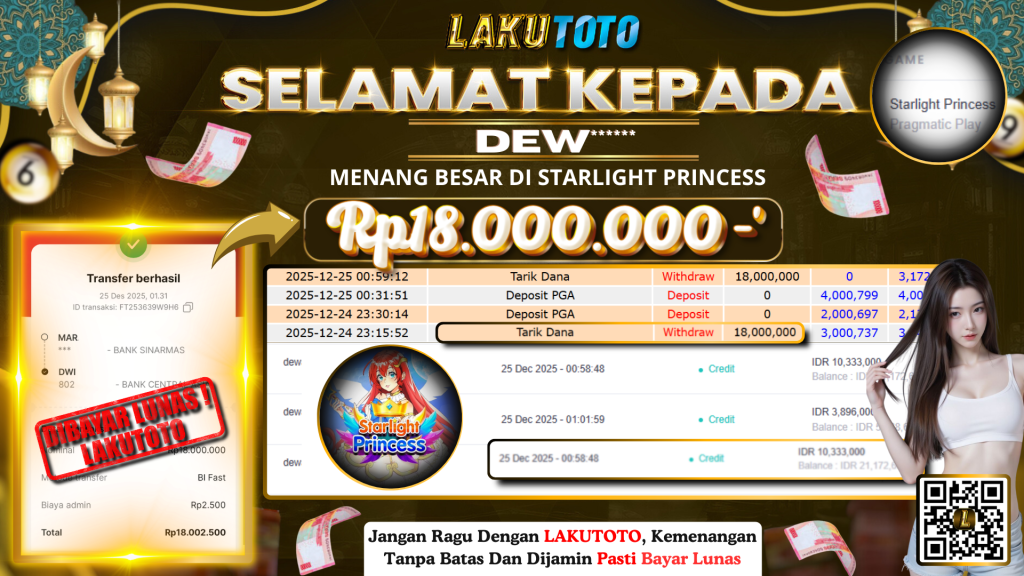 Kategori Bukti Bayar JP BUKTI BAYAR JP Penulis artikel Oleh Operator Lakutoto Tanggal artikel 25 Desember 2025 STARLIGHT PRINCESS KAMIS, 25 DESEMBER 2025 RP18.000.000,- SELAMAT KEPADa PEMENANG, SALAM JP ← PREDIKSI HONGKONG LOTTO → BUKTI BAYAR JP