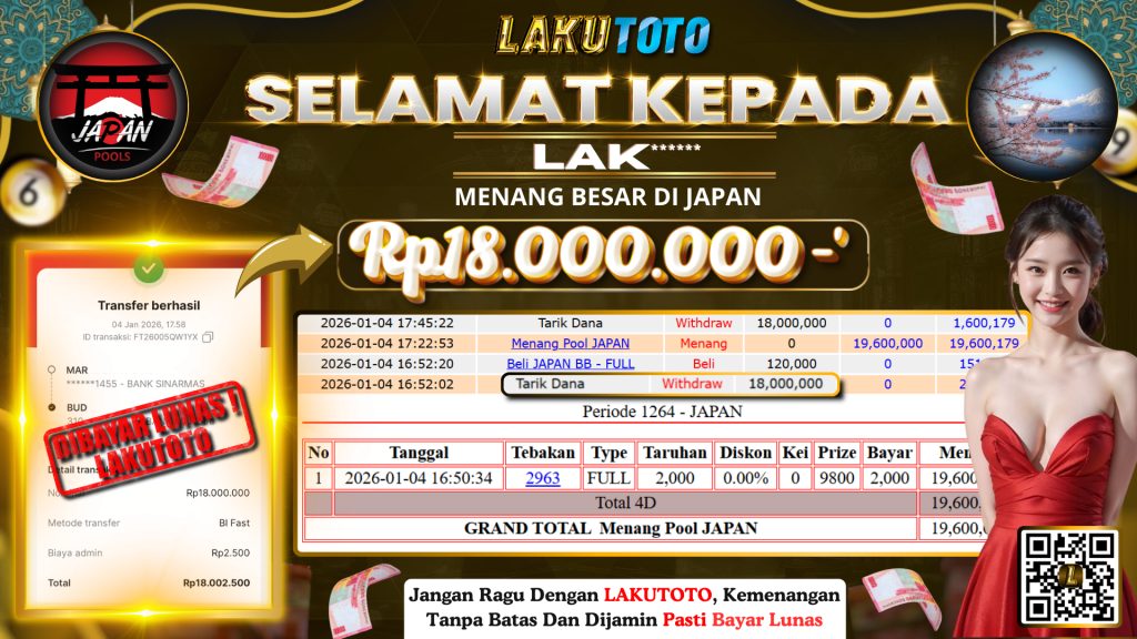 Kategori Bukti Bayar JP BUKTI BAYAR JP Penulis artikel Oleh Operator Lakutoto Tanggal artikel 4 Januari 2026 JAPAN MINGGU, 04 JANUARI 2026 RP18.000.000,- SELAMAT KEPADa PEMENANG, SALAM JP ← BUKTI BAYAR JP → BUKTI BAYAR JP