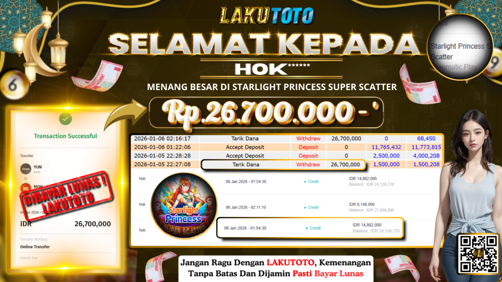 Kategori Bukti Bayar JP BUKTI BAYAR JP Penulis artikel Oleh Operator Lakutoto Tanggal artikel 6 Januari 2026 STARLIGHT PRINCESS SUPER SCATTER SELASA, 06 JANUARI 2026 RP26.700.000,- SELAMAT KEPADa PEMENANG, SALAM JP ← BUKTI BAYAR JP → BUKTI BAYAR JP