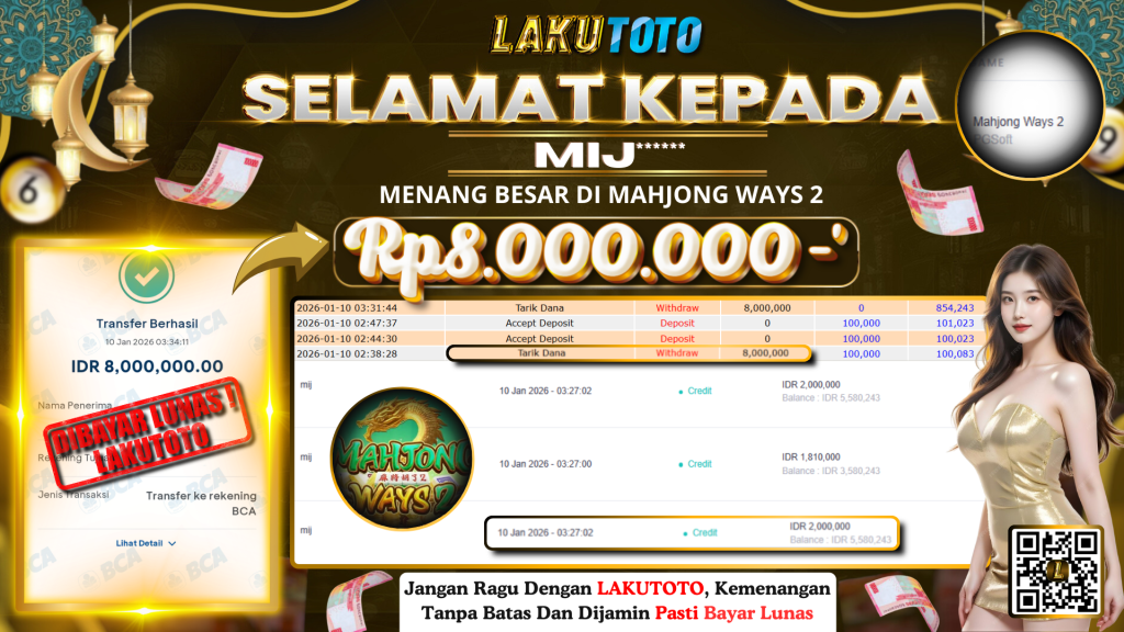 Kategori Bukti Bayar JP BUKTI BAYAR JP Penulis artikel Oleh Operator Lakutoto Tanggal artikel 10 Januari 2026 MAHJONG WAYS 2 SABTU, 10 JANUARI 2026 RP8.000.000,- SELAMAT KEPADa PEMENANG, SALAM JP ← BUKTI BAYAR JP → BUKTI BAYAR JP