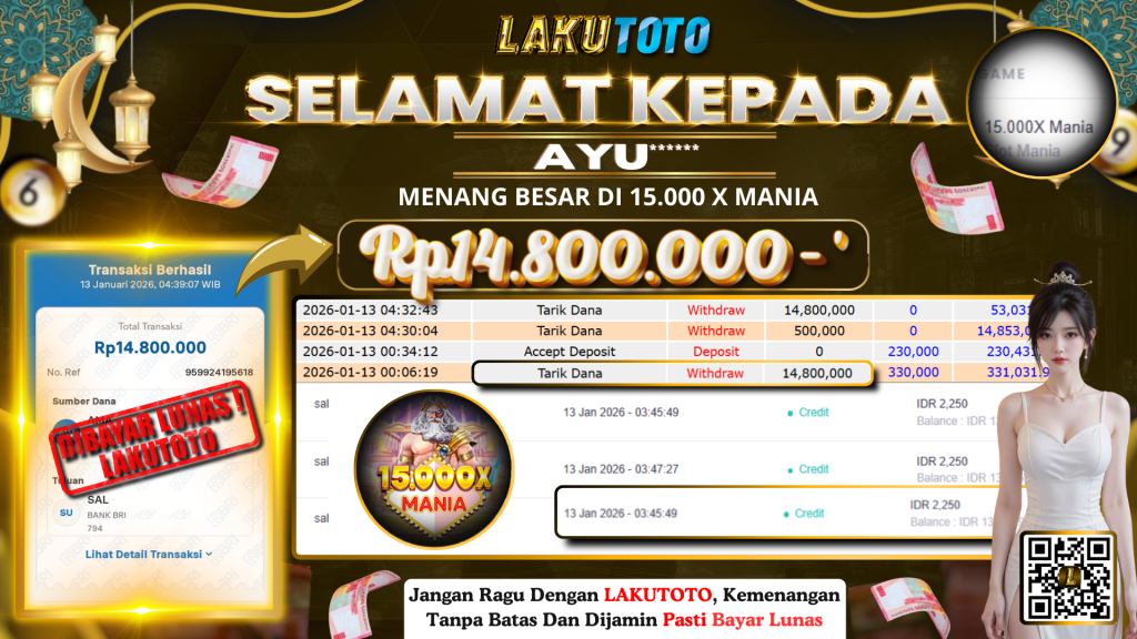 Kategori Bukti Bayar JP BUKTI BAYAR JP Penulis artikel Oleh Operator Lakutoto Tanggal artikel 13 Januari 2026 15.000 X MANIA SELASA, 13 JANUARI 2026 RP14.800.000,- SELAMAT KEPADa PEMENANG, SALAM JP ← BUKTI BAYAR JP → BUKTI BAYAR JP