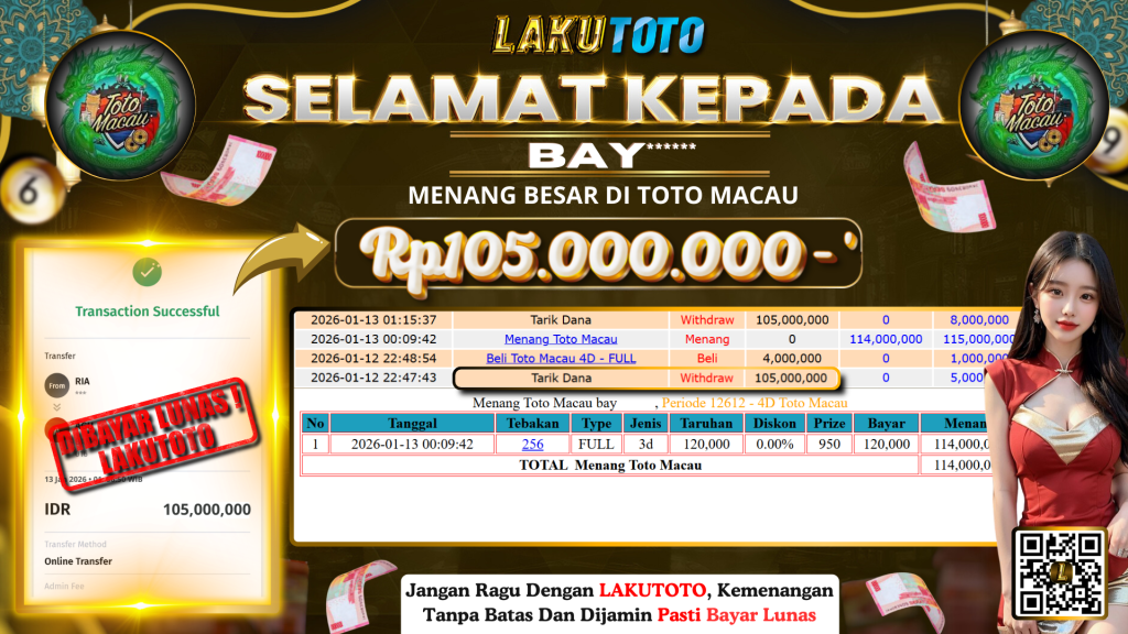 Kategori Bukti Bayar JP BUKTI BAYAR JP Penulis artikel Oleh Operator Lakutoto Tanggal artikel 13 Januari 2026 TOTO MACAU 4D SELASA, 13 JANUARI 2026 RP105.000.000,- SELAMAT KEPADa PEMENANG, SALAM JP ← BUKTI BAYAR JP