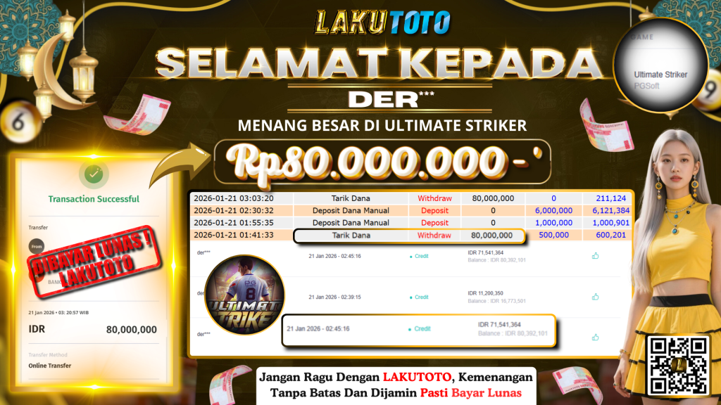 Kategori Bukti Bayar JP BUKTI BAYAR JP Penulis artikel Oleh Operator Lakutoto Tanggal artikel 21 Januari 2026 ULTIMATE STRIKER RABU, 21 JANUARI 2026 RP80.000.000,- SELAMAT KEPADa PEMENANG, SALAM JP ← BUKTI BAYAR JP → BUKTI BAYAR JP
