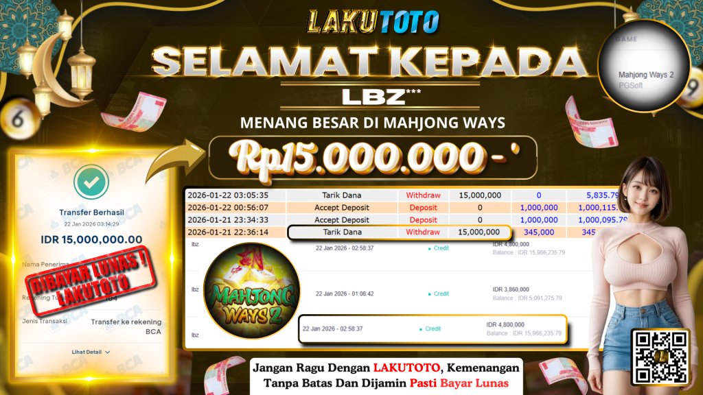 Kategori Bukti Bayar JP BUKTI BAYAR JP Penulis artikel Oleh Operator Lakutoto Tanggal artikel 22 Januari 2026 MAHJONG WAYS KAMIS, 22 JANUARI 2026 RP15.000.000,- SELAMAT KEPADa PEMENANG, SALAM JP ← BUKTI BAYAR JP → BUKTI BAYAR JP